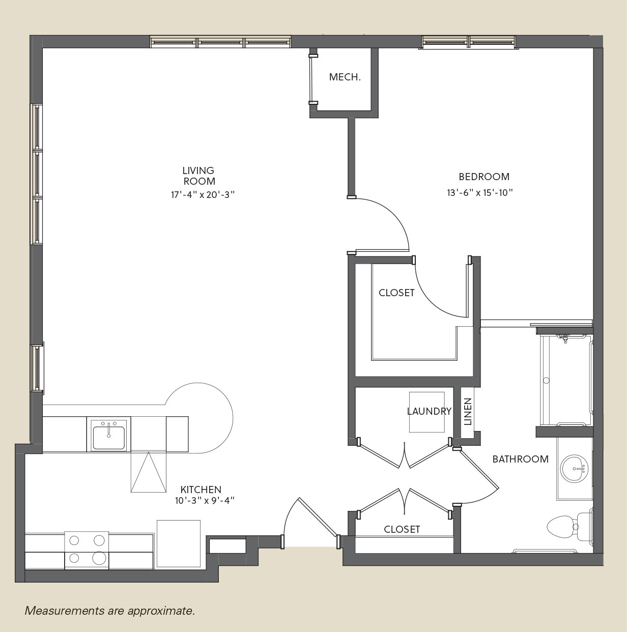 The studio apartments feature an open-concept layout with a beautiful kitchenette and oversized windows that fill the space with natural light, complemented by a lovely large bathroom. For those seeking more space, the one-bedroom apartments offer a bright, airy feel with ample closet space, while the one-bedroom-plus-den design provides even more room for an office, sitting area, or extra sleeping space, making it a perfect fit for your unique lifestyle. Meanwhile, the two-bedroom apartments offer the ideal balance of convenience and luxury, with sleek finishes and a range of thoughtful features that bring both sparkle and comfort to your daily living.